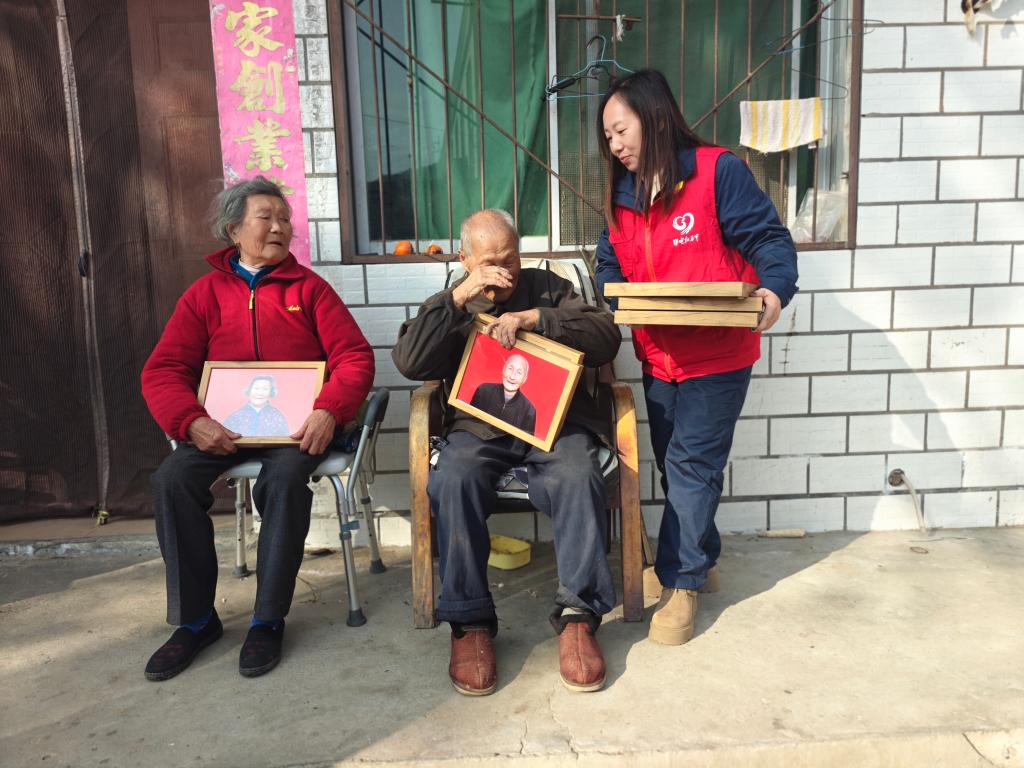 放下相机,何艮说起公益举动的由来。2024年10月,何艮担任郭家村电力网格员,到郭贵保家替换老化线路。作业完毕后,她见白叟在村口大杨树下晒太阳,便顺手拍了张相片。相片里,白叟笑脸慈祥。可当何艮想把这张数字相片传给白叟时,却发现白叟用的是只能接打电话的晚年手机;更让她心头一酸的是,她在白叟家里翻找良久,竟找不出一张归于白叟的相片。